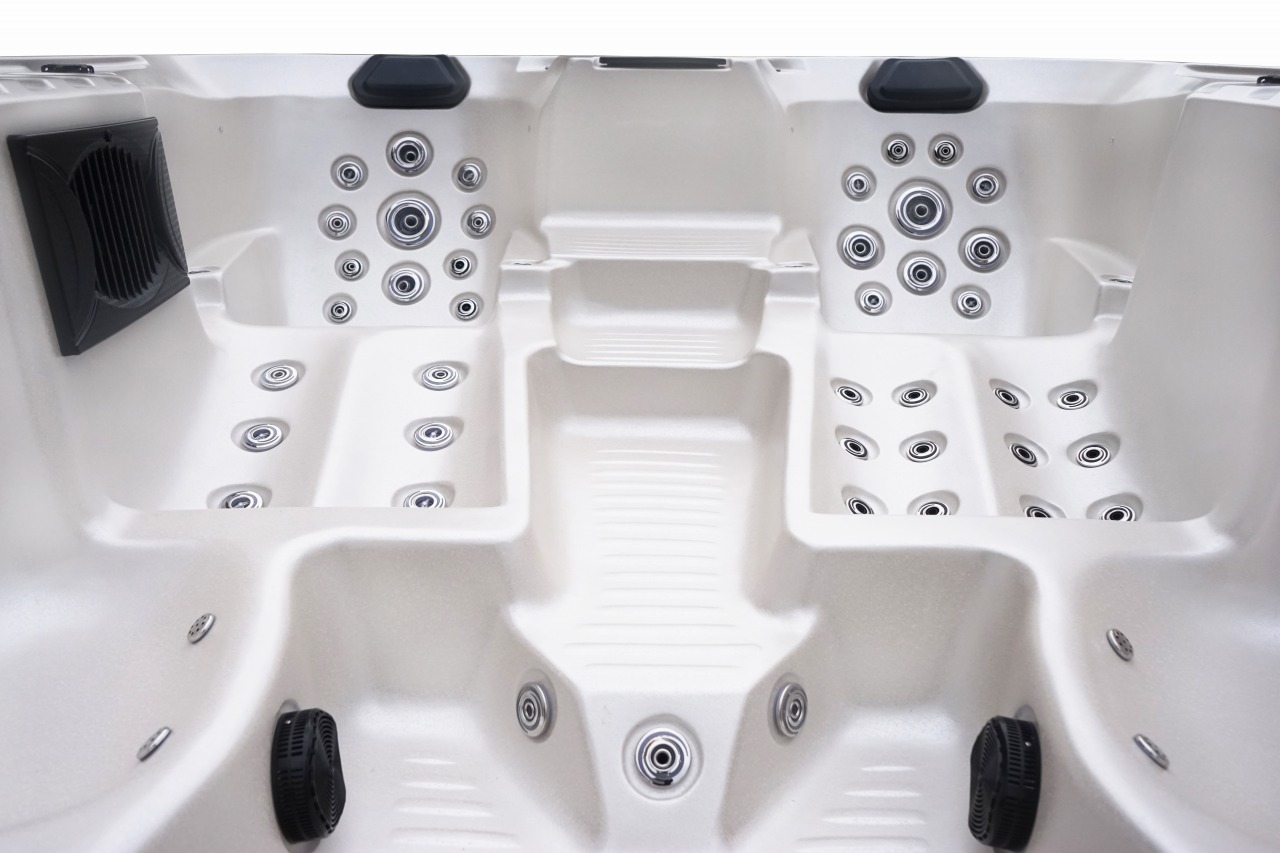 В гидромассажном СПА-бассейне Ловиа Спа L702 установлено довольно много форсунок - 103 штуки. Через них вода и воздух направленно воздействуют на тело, производя желаемый гидромассажный эффект. Каждый пользователь может индивидуально регулировать силу потока.