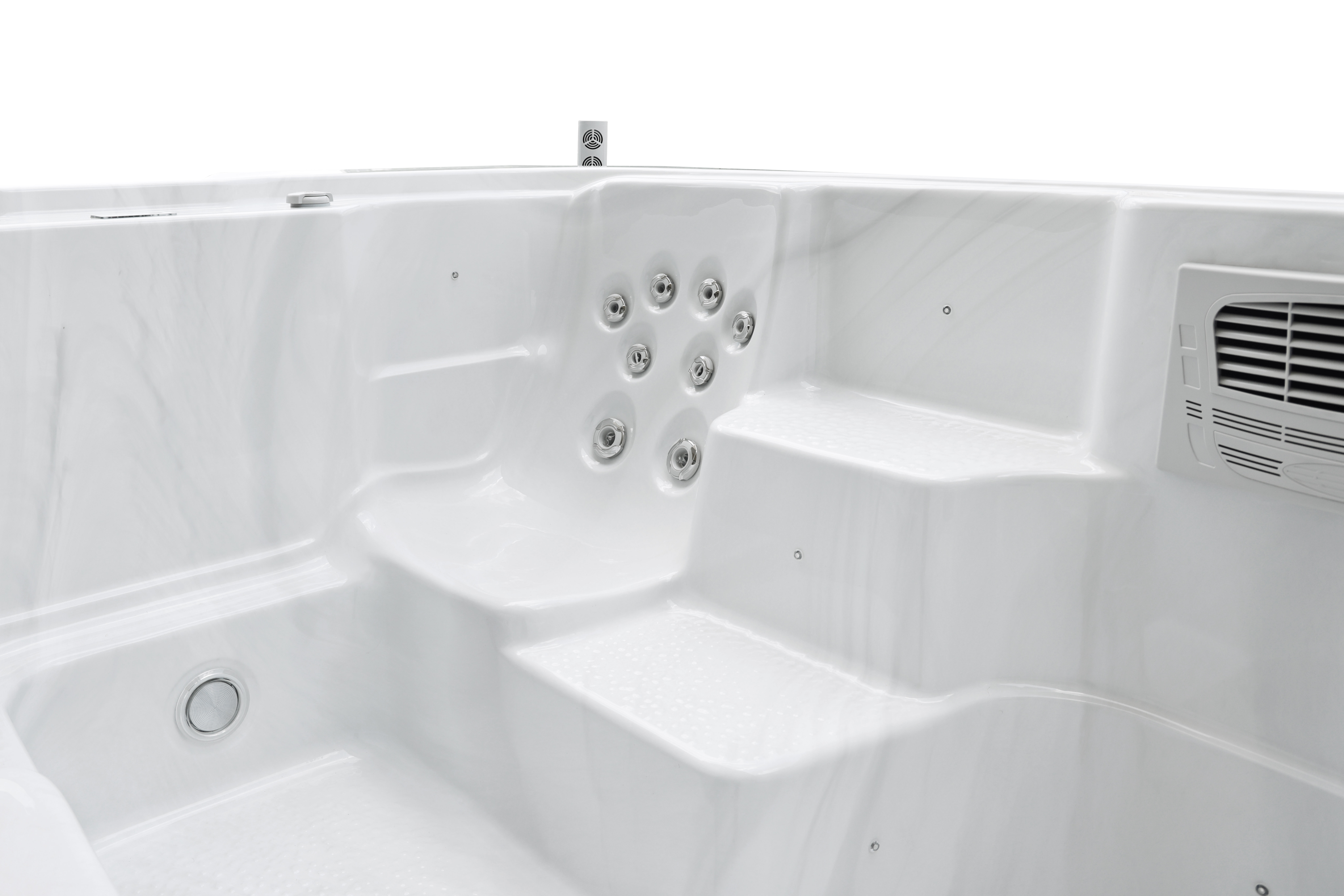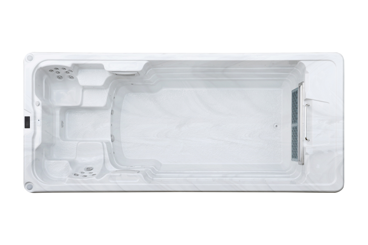 Helsinki Turbo оснащен высокопроизводительным пропеллерным насосом мощностью 6,5 кВт с 16 скоростными режимами, который создает мощный равномерный поток для комфортного плавания на месте. Дополнительный насос 1,5 кВт обеспечивает работу 18 массажных форсунок для эффективного восстановления после тренировок.
